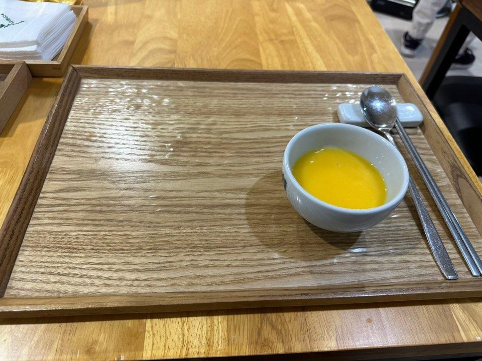단호박죽을 먹고 있으면 메인 메뉴가 곧 나옵니다.