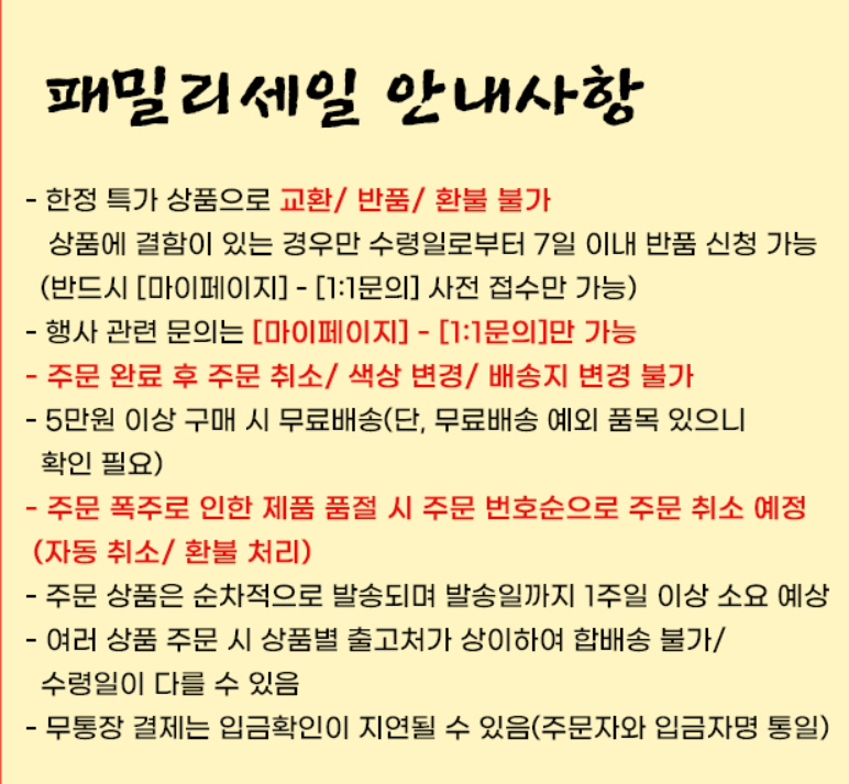 구매전 패밀리세일 안내사항 확인하시고