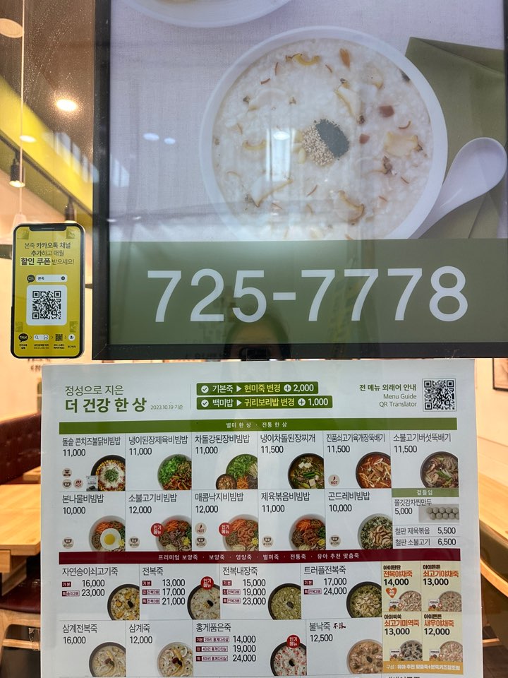 본죽 & 비빔밥 종로 르메이에르점 메뉴 및 추천메뉴