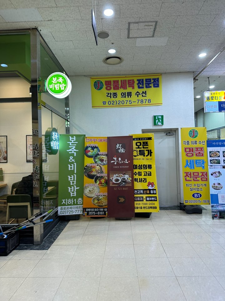 종로 본죽&비빔밥은 지하에 위치하고 있습니다.
