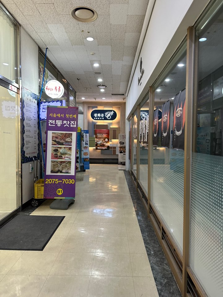 1층 광화문 미진 ( 수요미식회에도 나온 맛집) 근처에 미래부동산 앞에 지하로 가는 에스컬레이터를 타면 됩니다.