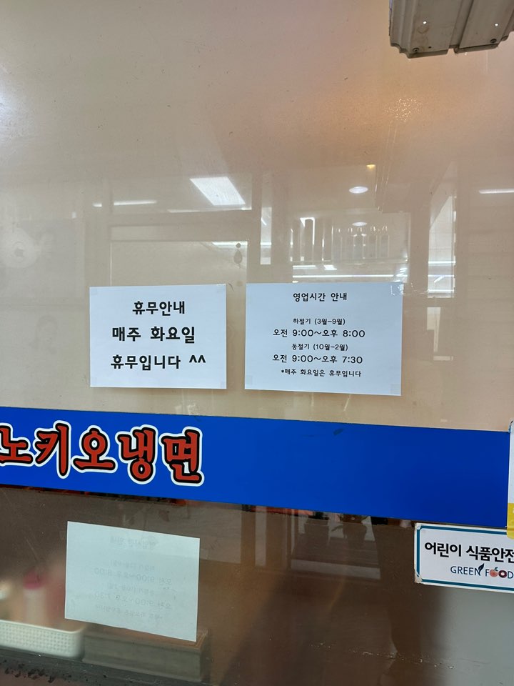 매주 화요일은 휴무이고 하절기, 동절기에 따라서 30분정도의 닫는 시간 차이가 있음을 알 수 있습니다.
