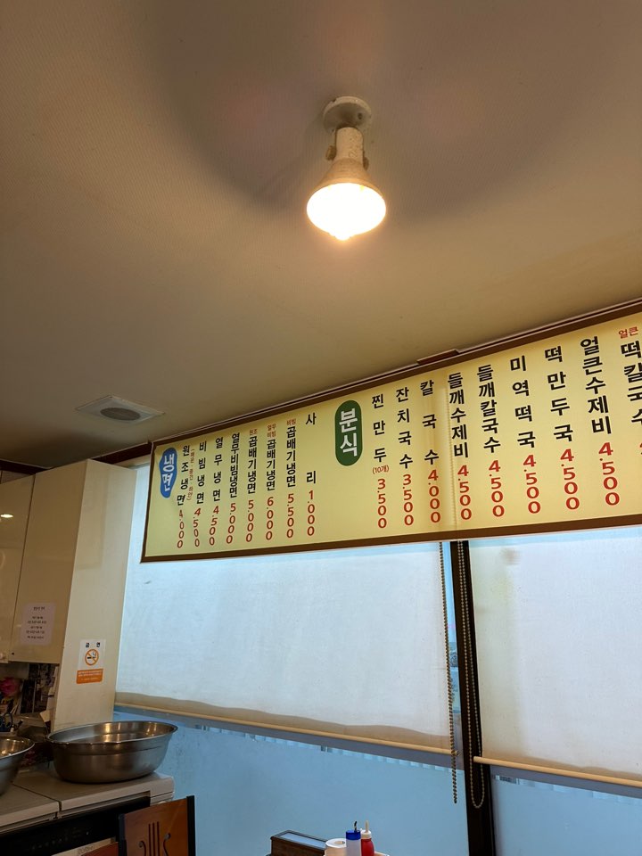 비빔냉면, 열무냉면, 찐만두, 잔치국수, 칼국수, 들깨칼국수, 떡국 , 얼큰수제비를 비롯해서 김밥메뉴까지 있습니다.