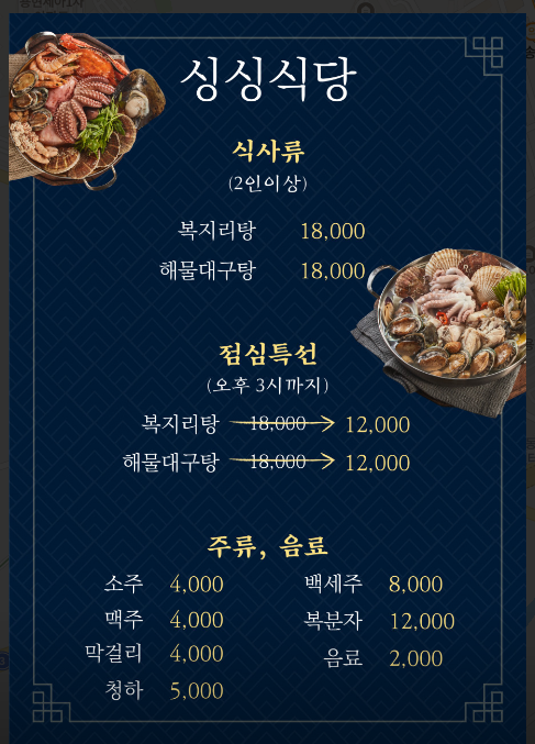 매일매일 공수해오는 살아있는 싱싱한 해물을 합리적인 가격으로 맛볼 수 있는 프리미엄 해물찜 전문점 [ 싱싱식당 ]