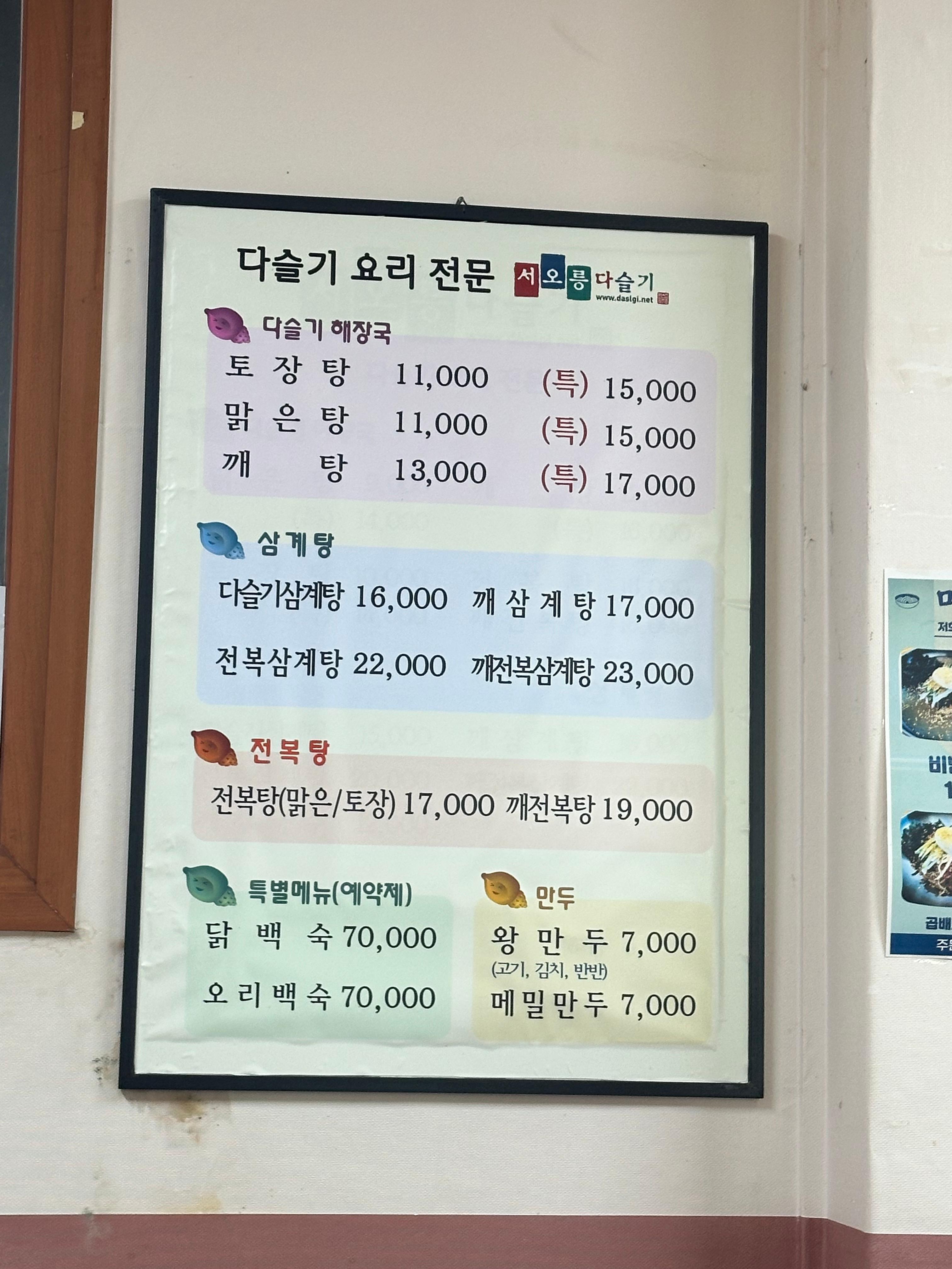 남양주맛집 - 서오릉다슬기 청학점 메뉴