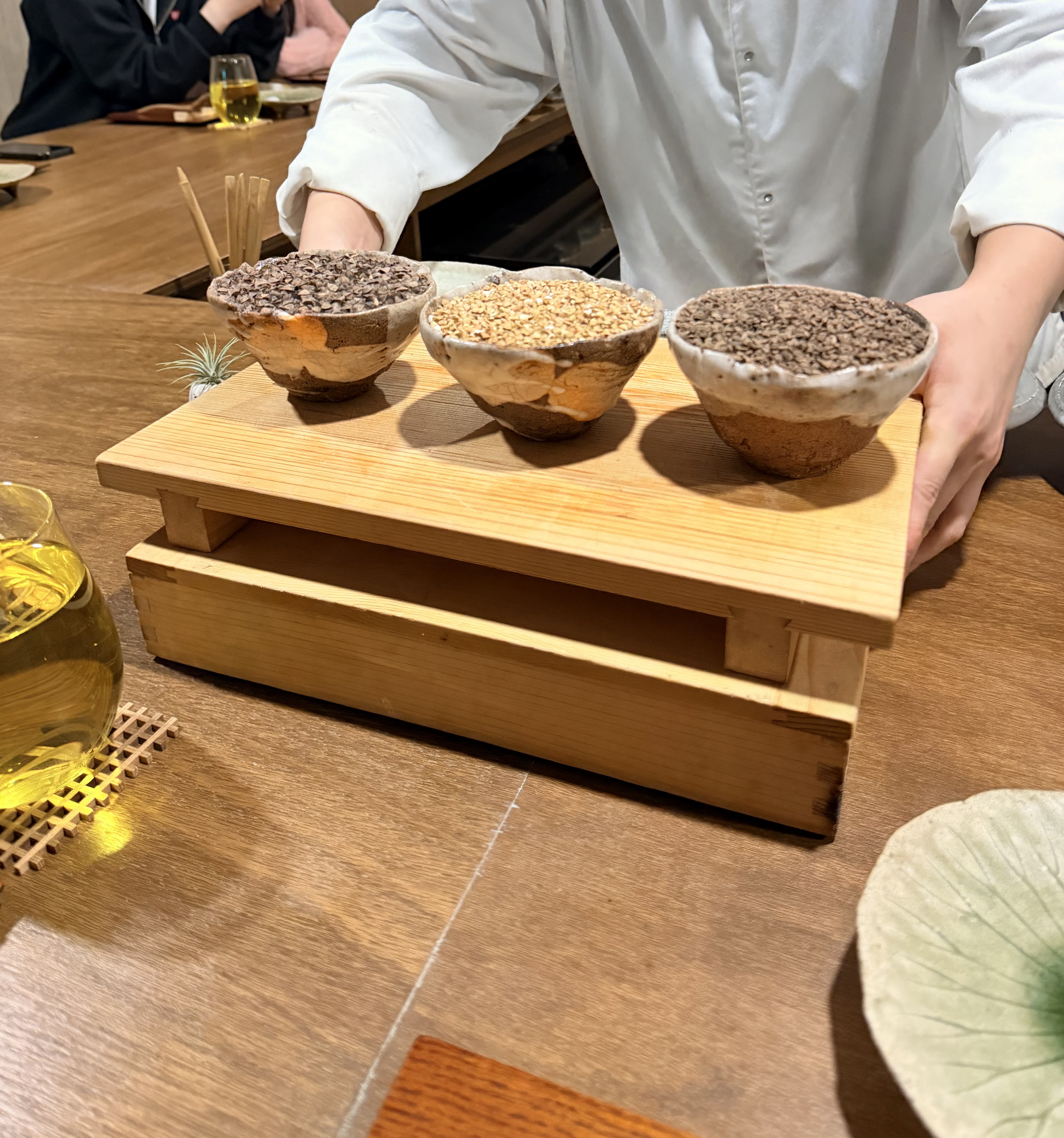 소바쥬는 겸손한 곡물인 메밀을 고급 요리 언어로 승화시키는 것을 목표로 한다고 합니다. 다양한 조리기법을 통해 메밀의 고소함, 단맛, 미네랄 향 등 복합적인 성격을 탐구하며 코스로 표현합니다.