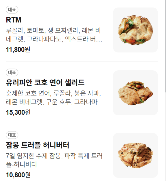 파작의 메뉴는 도우를 활용한 음식이 중심이 됩니다.